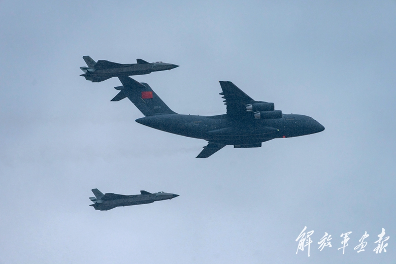 11月23日,空軍兩架殲-20為接迎烈士遺骸回國的運-20護航。(攝影/楊 盼)