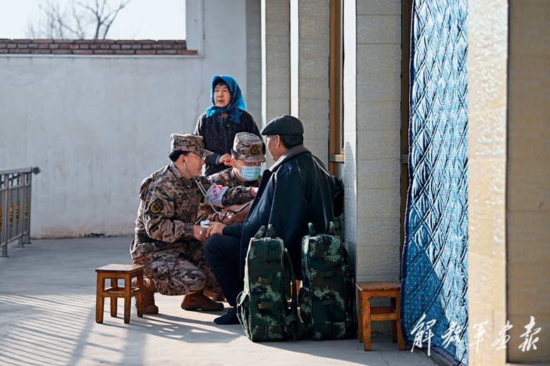 12月19日,武警青??傟牶|支隊衛(wèi)生隊官兵在青海省海東市民和回族土族自治縣中川鄉(xiāng)草灘村開展醫(yī)療保障。(攝影/新華社記者 張 龍)