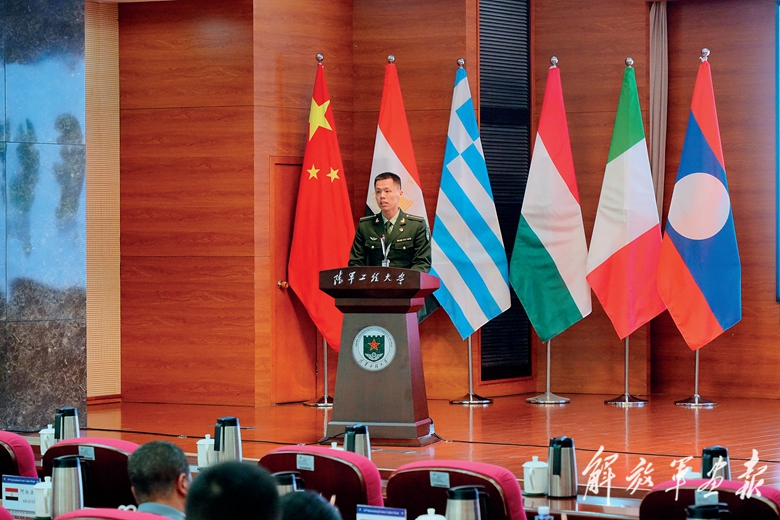 陸軍第十屆國際學(xué)員周活動期間,中方學(xué)員在專題研討會上演講。(攝影/陳勁霖)