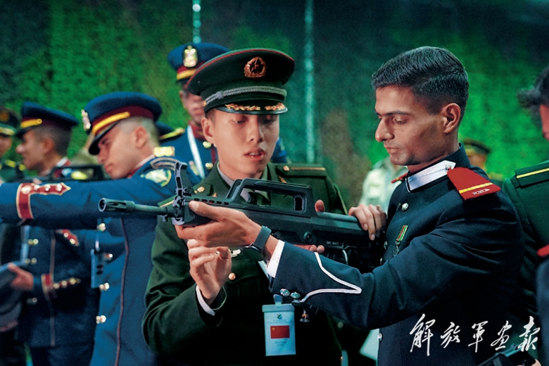 第十屆陸軍國際學(xué)員周活動期間,外軍學(xué)員體驗我軍輕武器。(攝影/梁 軻)