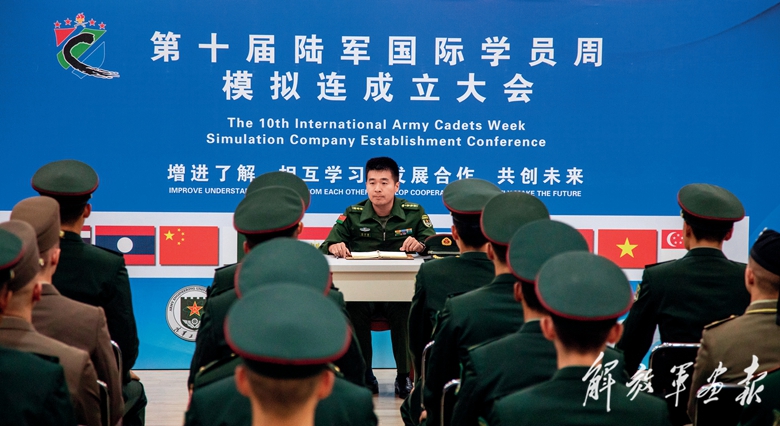 第十屆陸軍國際學(xué)員周模擬連成立大會現(xiàn)場。(攝影/張周浩宇)
