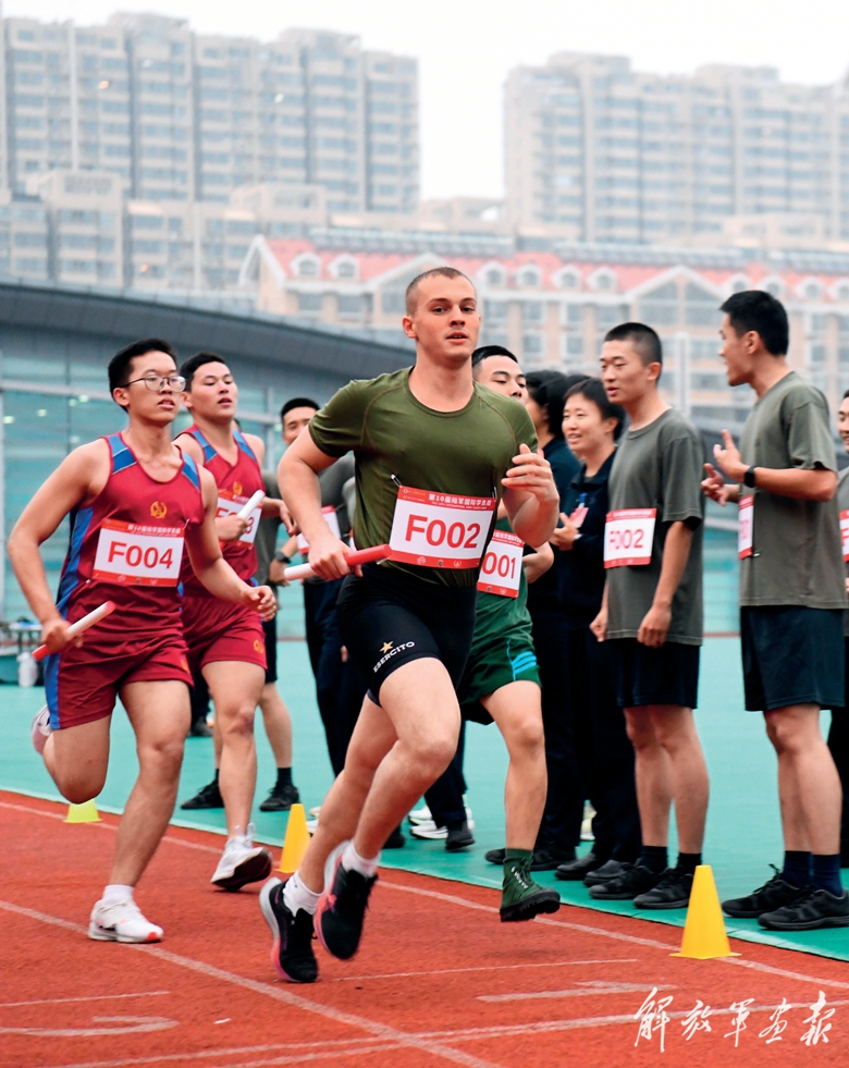 第十屆陸軍國際學(xué)員周活動期間,中外學(xué)員參加接力跑比賽。(攝影/陳勁霖)