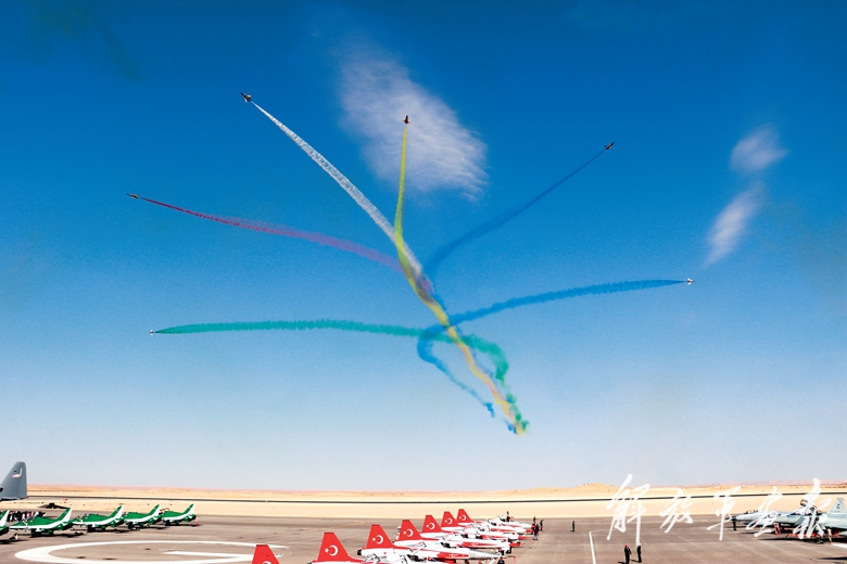 根據(jù)主辦方安排,本屆防務展期間,空軍八一飛行表演隊還與“沙特之鷹”“土耳其之星”等飛行表演隊共舞藍天,通過精彩的飛行表演共同傳遞和平友誼。