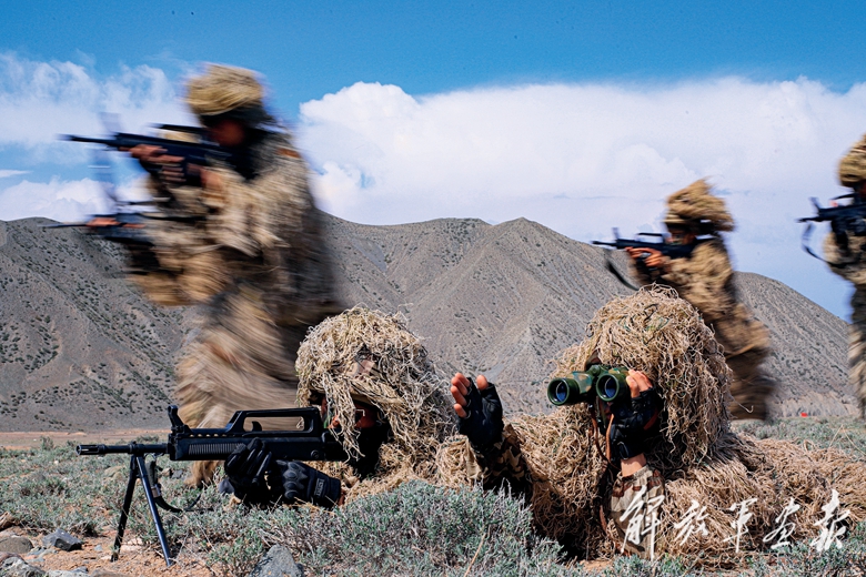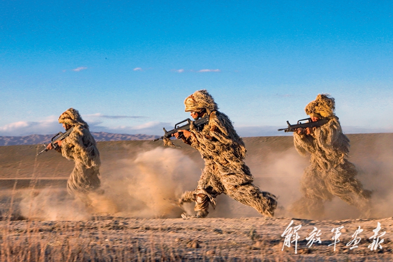 火力分隊(duì)向目標(biāo)地域快速機(jī)動(dòng)。