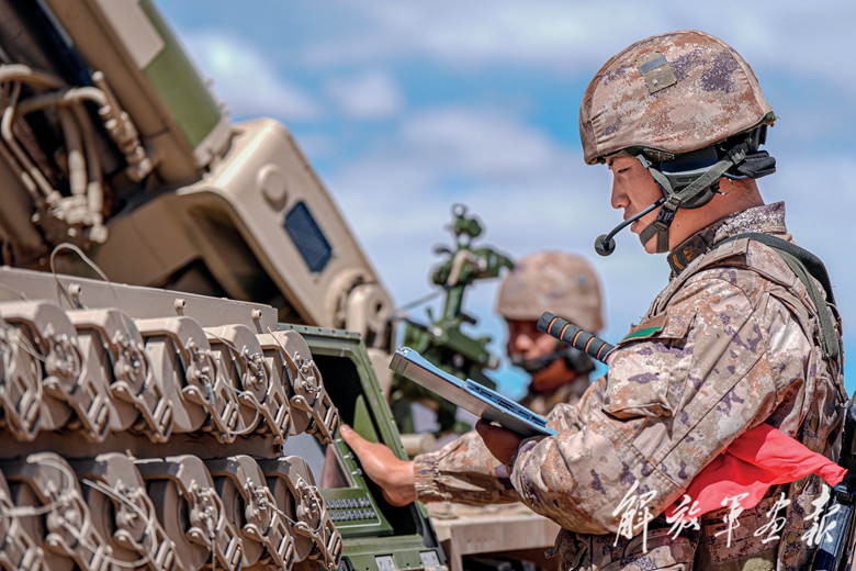 “敵”多個(gè)目標(biāo)已被摧毀,但我方遭“敵”遠(yuǎn)程火力打擊風(fēng)險(xiǎn)增加。各炮班密切協(xié)同,向另一發(fā)射陣地實(shí)施機(jī)動(dòng)。修訂參數(shù)、校準(zhǔn)炮瞄、準(zhǔn)備發(fā)射……不多時(shí),炮彈再次呼嘯而出,“敵”碉堡、裝甲車等目標(biāo)被全部摧毀。