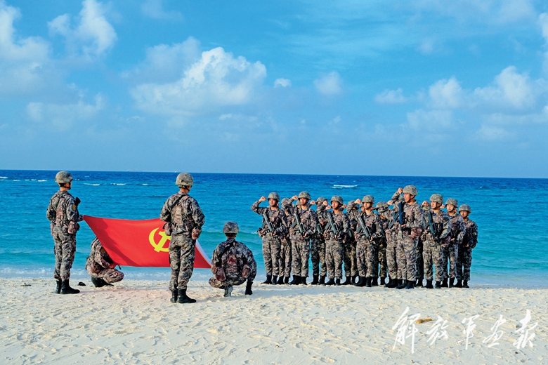 巡邏途中,官兵舉行向黨旗宣誓儀式。
