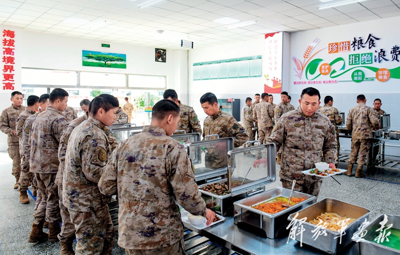 連隊(duì)根據(jù)高原高寒缺氧條件進(jìn)行合理配餐,讓官兵吃得科學(xué)、吃得健康,吃出戰(zhàn)斗力。