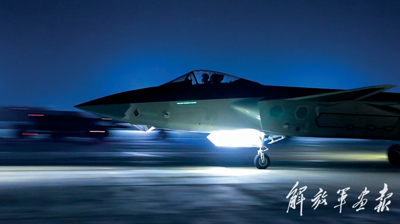 夜幕下,參訓(xùn)戰(zhàn)機(jī)滑出跑道。