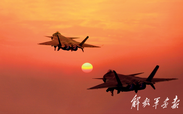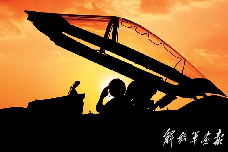 紅日映照下,飛行員駕駛戰(zhàn)機(jī)振翅高飛。