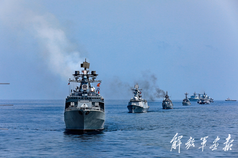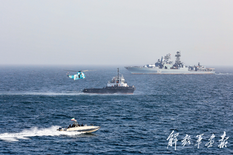 中方參演兵力為第45批護航編隊導彈驅逐艦烏魯木齊艦、導彈護衛(wèi)艦臨沂艦和綜合補給艦東平湖艦。伊方參演兵力為“阿爾博茲”號護衛(wèi)艦、“賈馬蘭”號護衛(wèi)艦等10余艘艦船。俄方參演兵力為“瓦良格”號導彈巡洋艦、“沙波什尼科夫海軍元帥”號大型反潛艦。