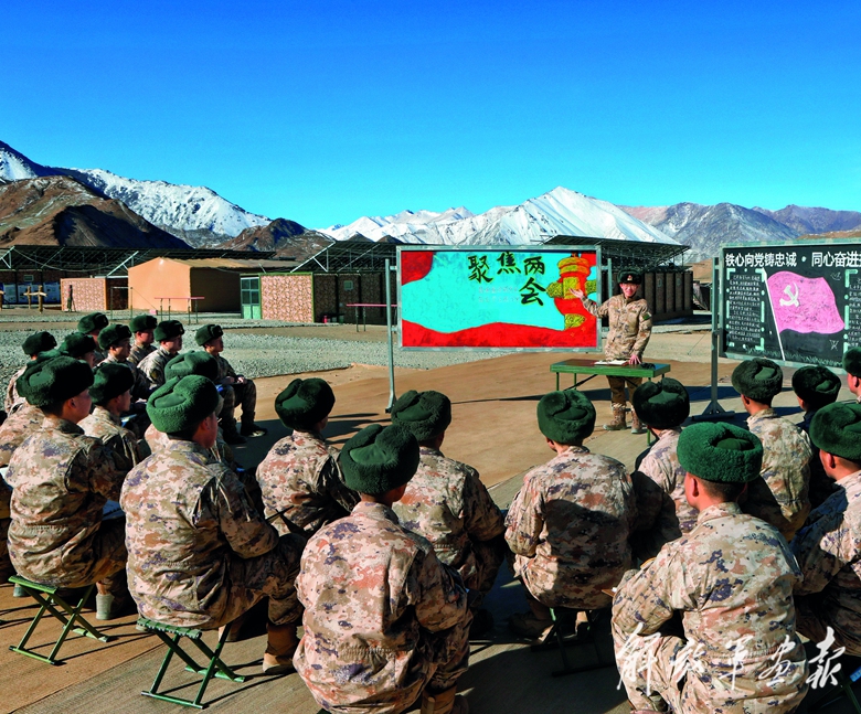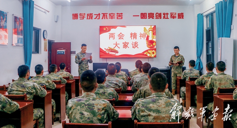 新疆軍區(qū)某團利用訓練間歇組織官兵認真學習全國兩會精神,激發(fā)練兵備戰(zhàn)熱情。(攝影/梁佳豪)