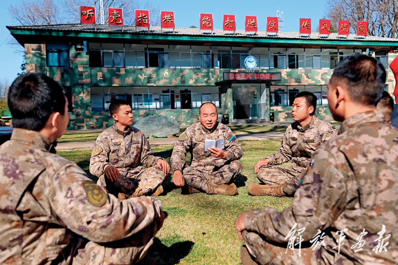 業(yè)余時間,陳民華(中)與戰(zhàn)友分享自己的人生感悟。