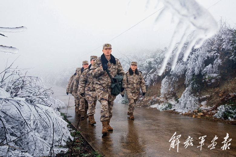 2月28日,空軍航空兵某旅通信連上等兵鄭文杰(前一)最后一次與戰(zhàn)友巡查通信線路。(攝影/黃國泰)