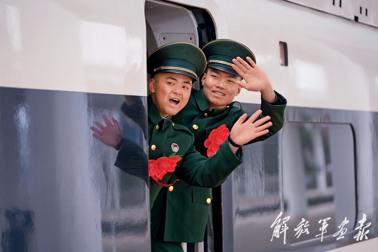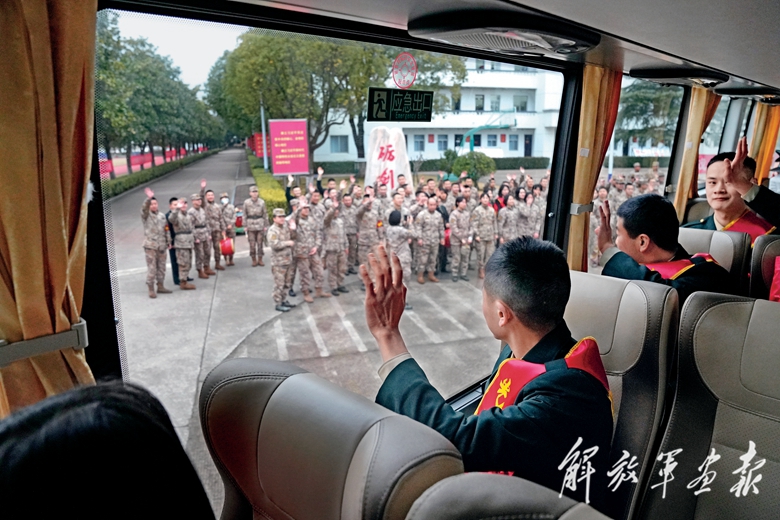 3月1日,武警貴州總隊黔西南支隊退伍老兵揮手告別戰(zhàn)友。(攝影/李梓良)