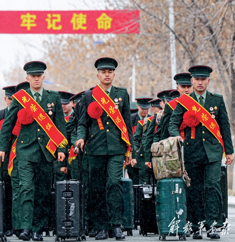 3月15日,新疆軍區(qū)某部退役士兵告別軍營,踏上返鄉(xiāng)征程。(攝影/段 潔)