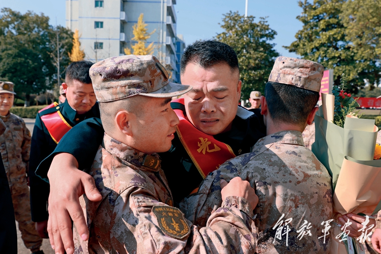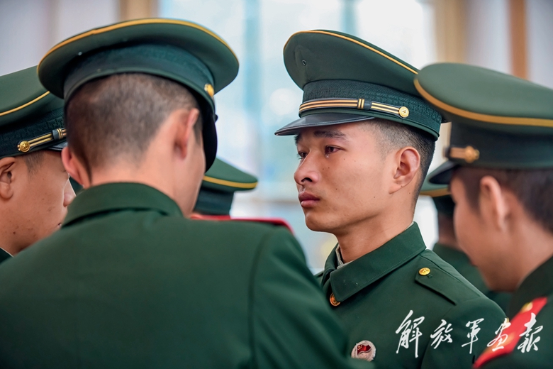 火箭軍某部退役士兵灑淚告別戰(zhàn)友。(攝影/馮 翔)