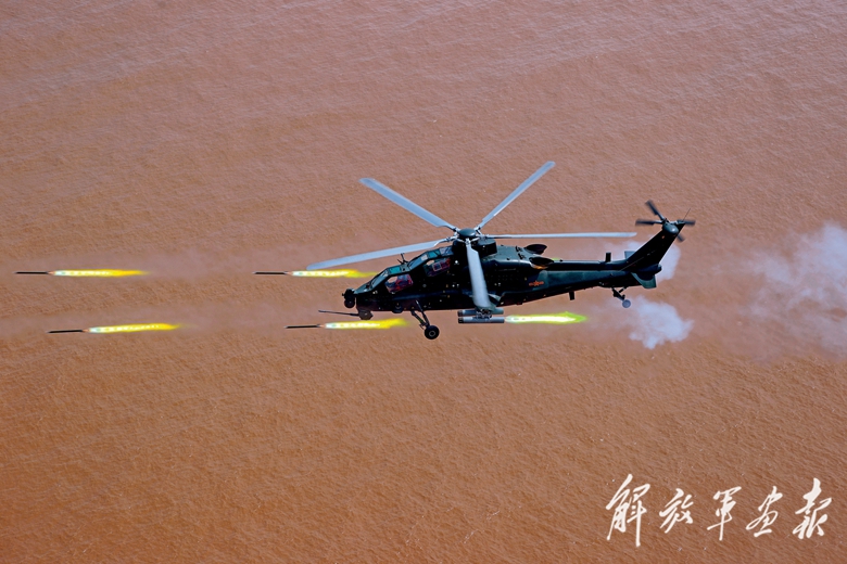 戰(zhàn)鷹列陣,鐵翼飛旋。仲春時(shí)節(jié),陸軍某陸航旅組織開展一場(chǎng)多機(jī)型、多彈種海上射擊訓(xùn)練。