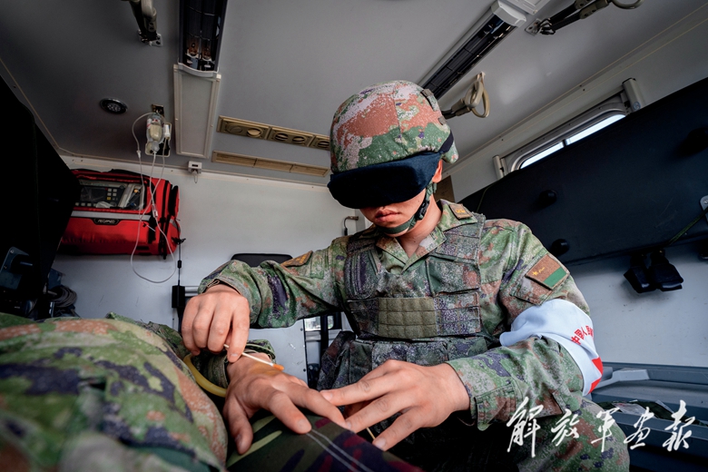 微光靜脈輸液比武賽場扣人心弦。救護(hù)車通過崎嶇路段,車上眼戴遮光布的醫(yī)護(hù)人員,在顛簸狀態(tài)下將輸液架調(diào)節(jié)至合適高度,在“傷員”手背摸索著尋找靜脈,敏捷地將針頭穩(wěn)穩(wěn)扎進(jìn)血管……