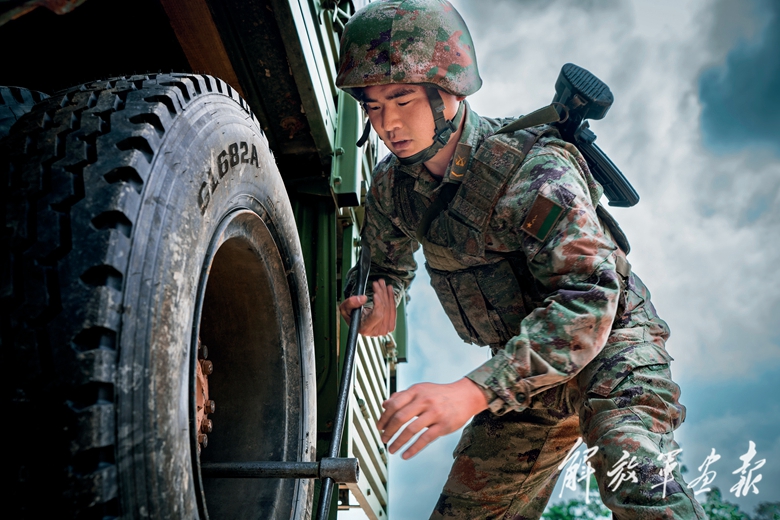 引擎轟鳴,煙塵四起。駕駛課目比武中,參賽隊員毛天賜駕駛車輛通過涉水路面、彈坑、壕溝等多種險難路段,完成限制區(qū)域掉頭、長距離倒車等課目后,人員下車進(jìn)行百米沖刺到“受損”車輛旁邊,排除高壓油路故障,在不借助千斤頂?shù)那闆r下快速更換輪胎。