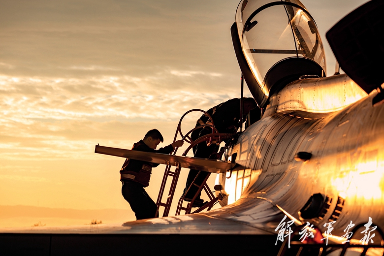 機(jī)務(wù)官兵維護(hù)戰(zhàn)機(jī)。