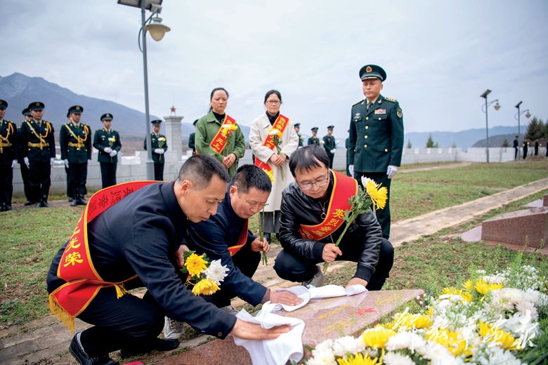 烈士親屬和官兵在烈士陵園深情緬懷英烈。