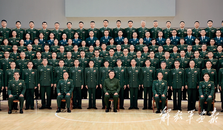 在熱烈的掌聲中,習(xí)近平親切接見陸軍軍醫(yī)大學(xué)官兵代表,并同大家合影留念。