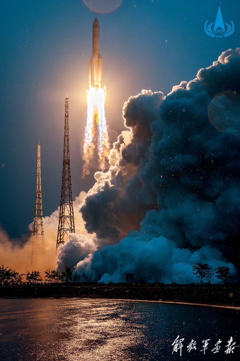 5月3日,嫦娥六號(hào)探測(cè)器由長(zhǎng)征五號(hào)遙八運(yùn)載火箭在中國(guó)文昌航天發(fā)射場(chǎng)發(fā)射。(國(guó)家航天局供圖)