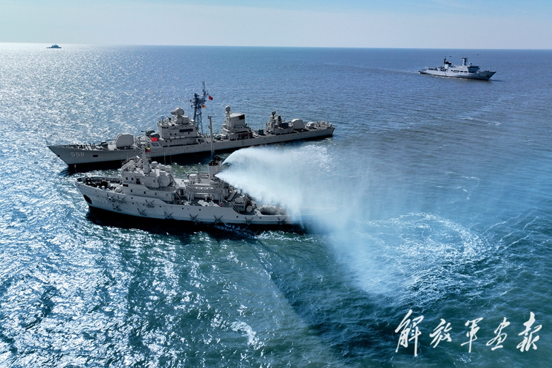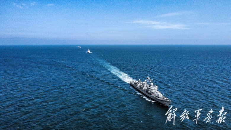 戰(zhàn)艦馳騁,波飛浪卷。海軍某部數(shù)艘艦艇組成編隊,赴某海域開展多課目訓(xùn)練,檢驗港岸訓(xùn)練成果。