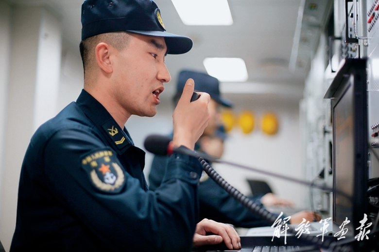 航行途中,官兵進行通信聯(lián)絡(luò)。
