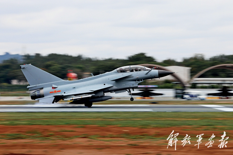 戰(zhàn)機(jī)加力起飛。