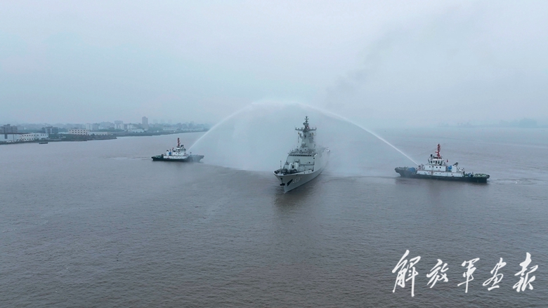 浙江省溫州市以“過(guò)水門”儀式,歡迎溫州艦“回家”。(攝影/潘敏蘇)