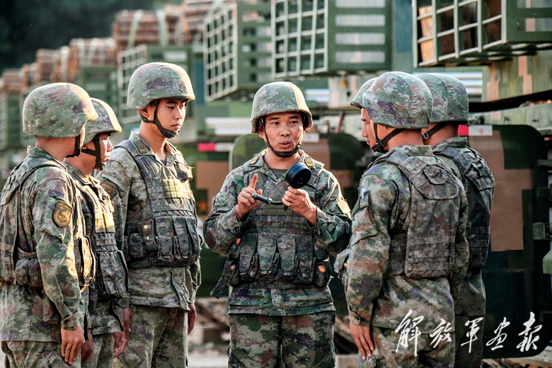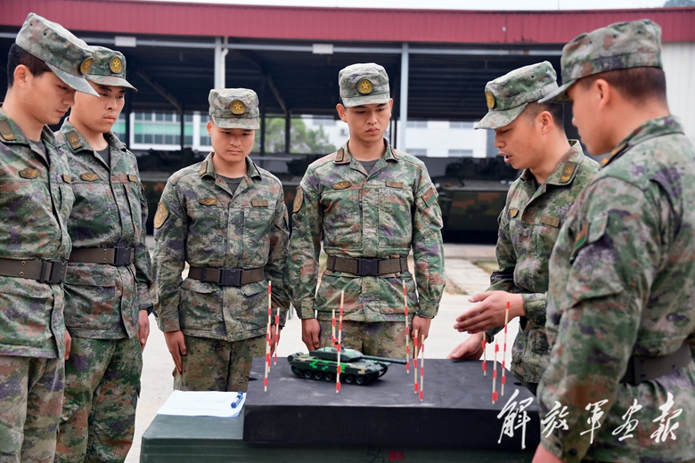 訓練骨干為戰(zhàn)友講解裝備性能。