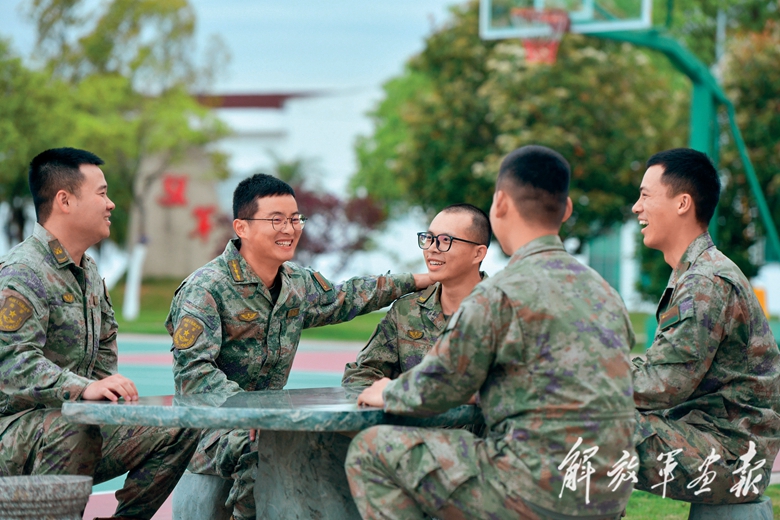 該旅某連干部(左二)與戰(zhàn)士交心談心,了解戰(zhàn)士所思所想。