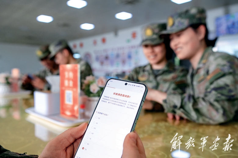 開設(shè)飯?zhí)谩岸S碼”,官兵可利用手機小程序?qū)锸尺M行滿意度測評。
