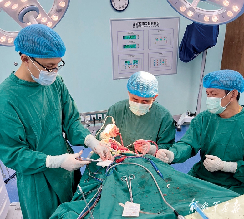 醫(yī)療隊專家李凱(左)和劉海濤(右)為患者實施手術(shù)。