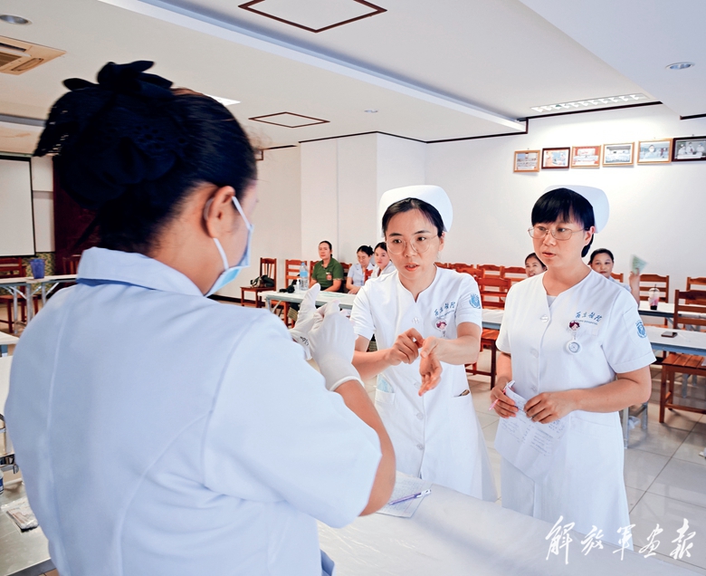 醫(yī)療隊隊員陳曉華(站立者右一)、馬榕禎(站立者中)為老撾人民軍103醫(yī)院培訓(xùn)護理人員。
