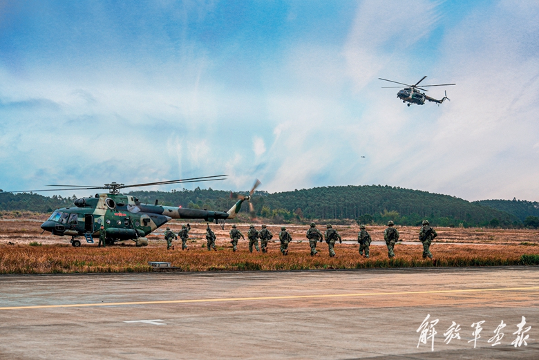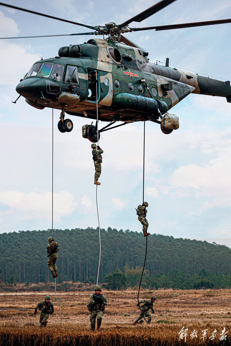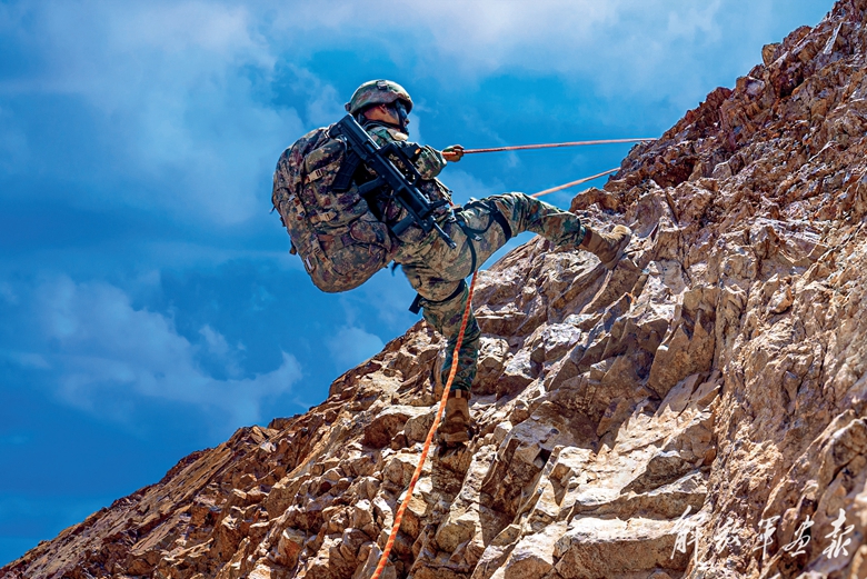 崖壁攀登、牽引橫越、直升機(jī)運(yùn)輸……一路上,官兵闖關(guān)奪隘,按計(jì)劃向目標(biāo)地域隱蔽滲透。突然,“敵情”傳來,“后方發(fā)現(xiàn)‘?dāng)耻姟粉櫼u擾。”分隊(duì)長(zhǎng)根據(jù)“敵軍”兵力和現(xiàn)地地形,果斷做出決策——突擊組分散警戒、破拆爆破組前出布設(shè)雷區(qū)、狙擊火力組占據(jù)有利地形……各小組接令而動(dòng)、默契協(xié)同,成功剿滅襲擾之“敵”。
