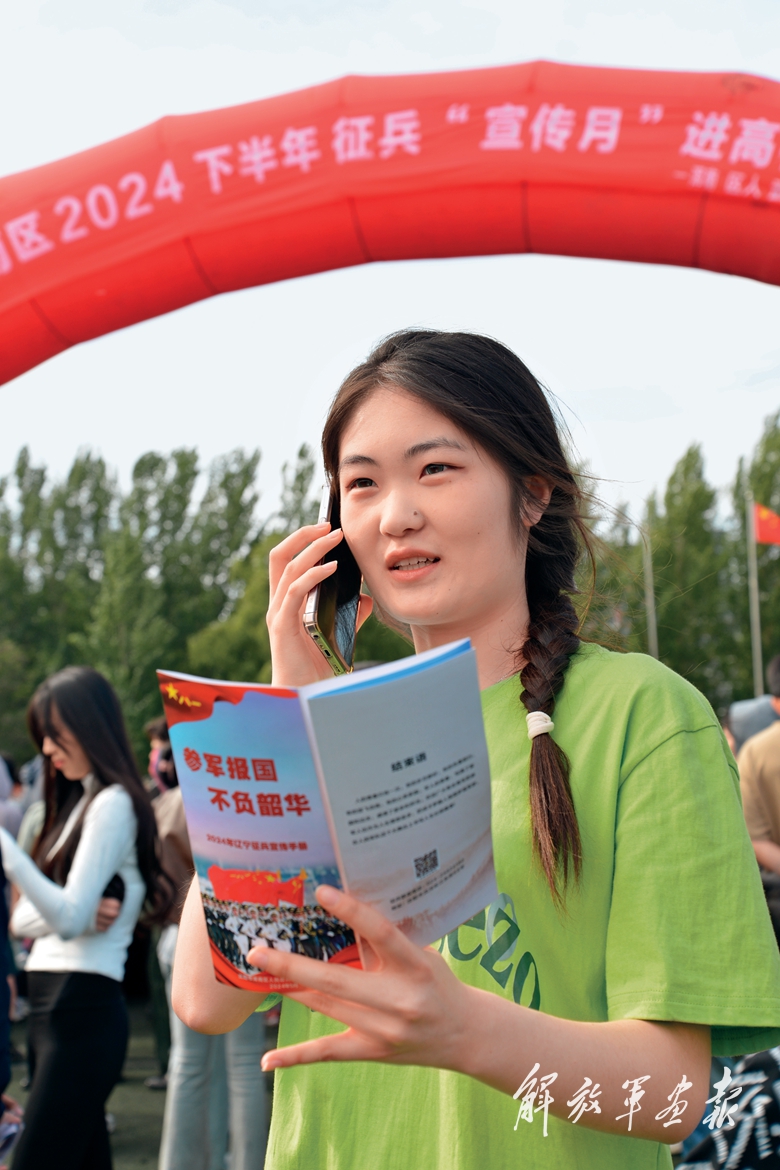 在沈陽(yáng)理工大學(xué)征兵宣傳活動(dòng)現(xiàn)場(chǎng),一名大學(xué)生打電話與家長(zhǎng)溝通,表達(dá)想當(dāng)兵的意愿。
