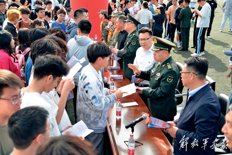 征兵宣傳活動(dòng)現(xiàn)場(chǎng),青年學(xué)子紛紛前來咨詢。