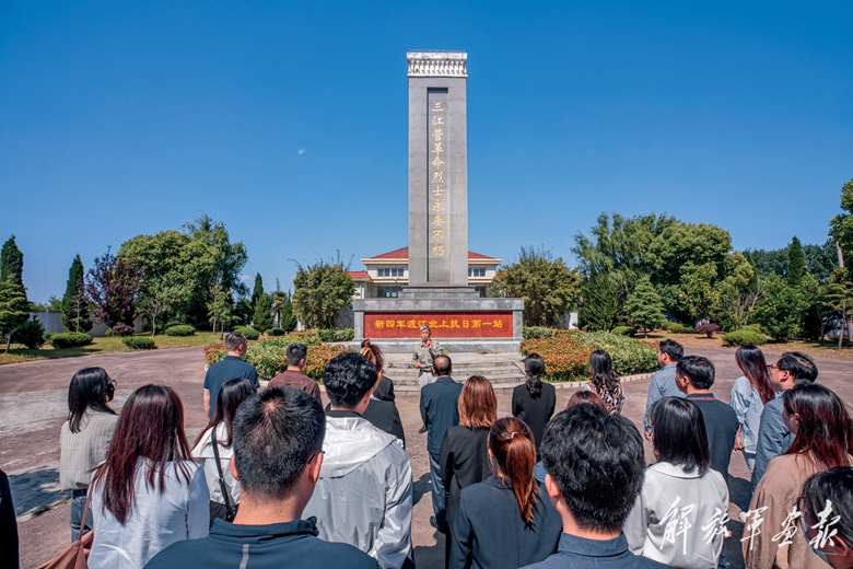 “1938年,新四軍渡江北上,踏上的第一塊土地就是位居長江北岸的三江營,自此拉開蘇中抗日斗爭的序幕。1949年4月8日至9日,解放軍第20軍60師179團(tuán)官兵經(jīng)過浴血奮戰(zhàn),攻克敵三江營江防堡壘,為渡江戰(zhàn)役拔掉‘釘子’,掃清障礙。4月20日,解放軍某部英勇炮擊擅闖三江營水域、企圖阻撓解放軍渡江的英國軍艦‘紫石英’號……”面對前來參觀祭掃的群眾,張明海將三江營的紅色歷史娓娓道來。