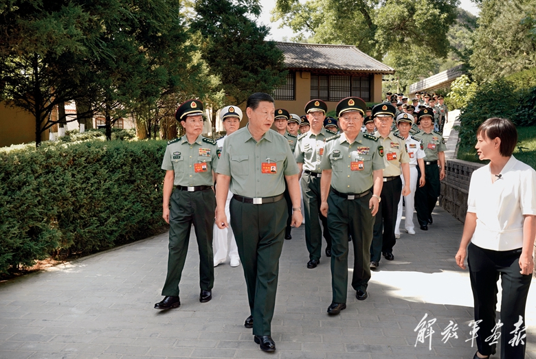 6月17日至19日,中央軍委政治工作會議在陜西延安召開。中共中央總書記、國家主席、中央軍委主席習近平出席會議并發(fā)表重要講話。這是17日下午,習近平帶領軍委一班人和各部門各單位主要負責同志瞻仰王家坪革命舊址。在中央軍委禮堂,習近平仔細觀看歷史照片,同大家深入交流,回顧黨中央和中央軍委領導全民族抗戰(zhàn)和解放戰(zhàn)爭的光輝歷程。