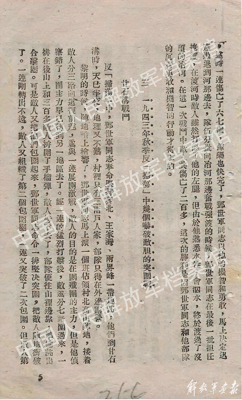 1944年華北軍區(qū)《英雄故事》中對鄧仕鈞的記載。(中國人民解放軍檔案館提供)