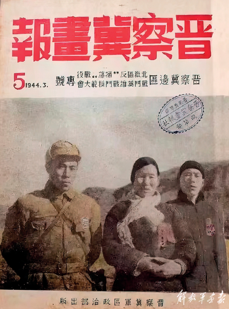 1944年3月,《晉察冀畫報(bào)》第5期封面《晉察冀三英雄》。(中國人民解放軍檔案館提供)