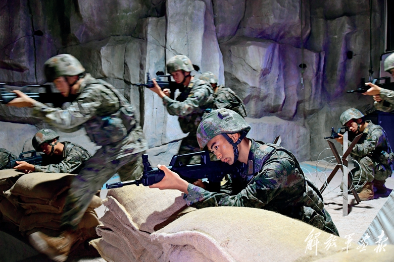 官兵在場館內(nèi)進(jìn)行模擬訓(xùn)練。