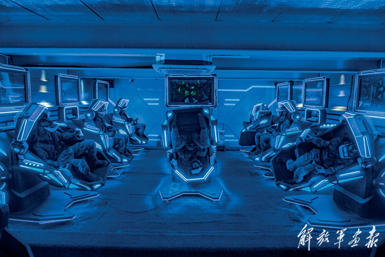 官兵通過VR設(shè)備體驗(yàn)戰(zhàn)場環(huán)境。