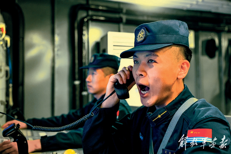 某艦作戰(zhàn)指揮室內(nèi),方寸熒屏上數(shù)據(jù)不斷閃爍。官兵緊盯屏幕,連續(xù)報告“敵”目標信息。