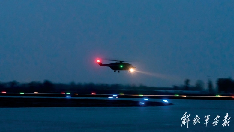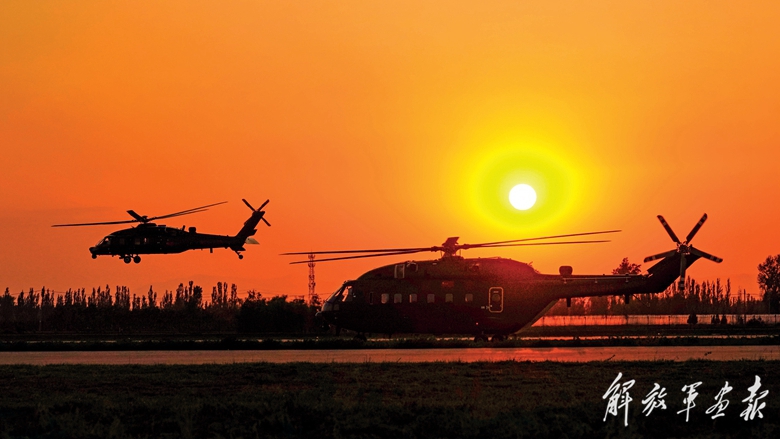 黃昏時(shí)分,直升機(jī)升空展開訓(xùn)練。