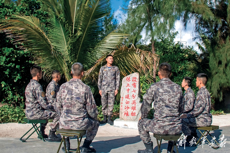 海軍西沙某水警區(qū)中建島守備部隊官兵交流學習中央軍委政治工作會議精神心得體會。(攝影/符余芬)