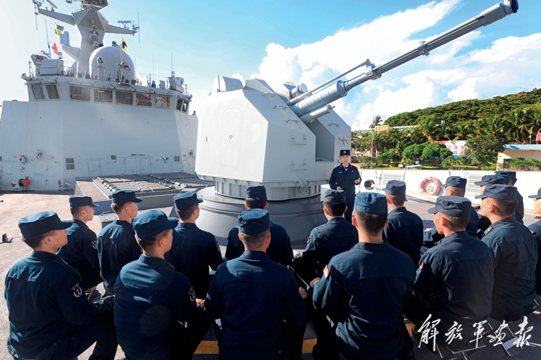 海軍某支隊郴州艦官兵交流分享學習中央軍委政治工作會議精神體會。(攝影/葛瀚強)