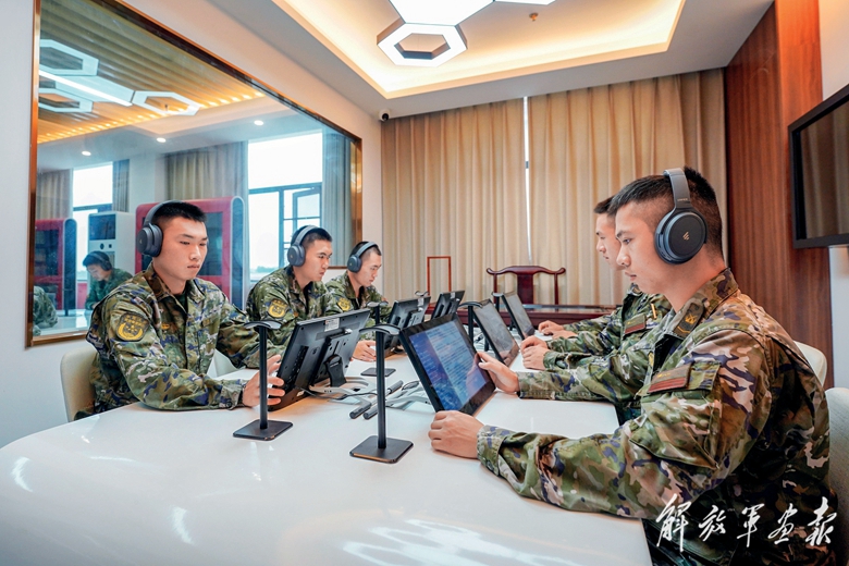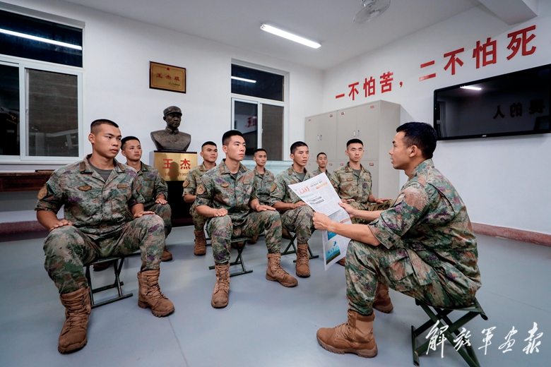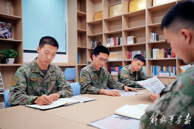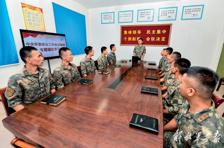 陸軍某旅“王杰班”戰(zhàn)士認真學習中央軍委政治工作會議精神。(攝影/廖振雄)
